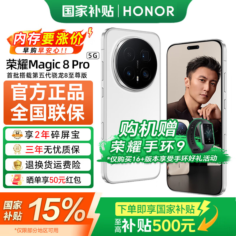 荣耀Magic8 Pro 【国家补贴15%】 第五代骁龙8至尊版 谢霆锋同款 超夜神长焦 新品5G手机 AI手机 雪域白 16GB+512GB 官方标配
