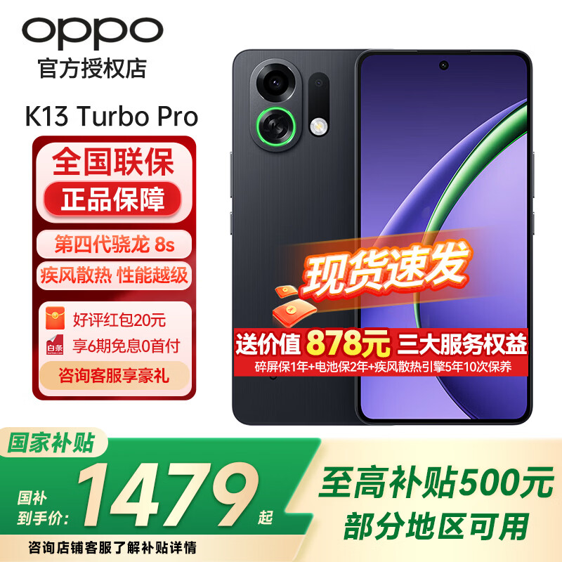 OPPOK13 Turbo Pro 5G手机新品 疾风散热引擎 第四代骁龙8s 7000mAh大电池 满级防水 黑武士 12+256 官方标配