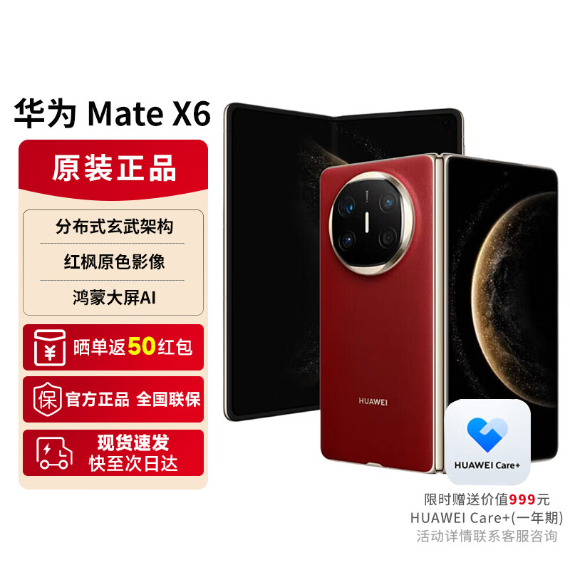 HUAWEI【36期免息0首付】华为 Mate X6 新品折叠屏旗舰手机 寰宇红 12GB+512GB 白条24期免息