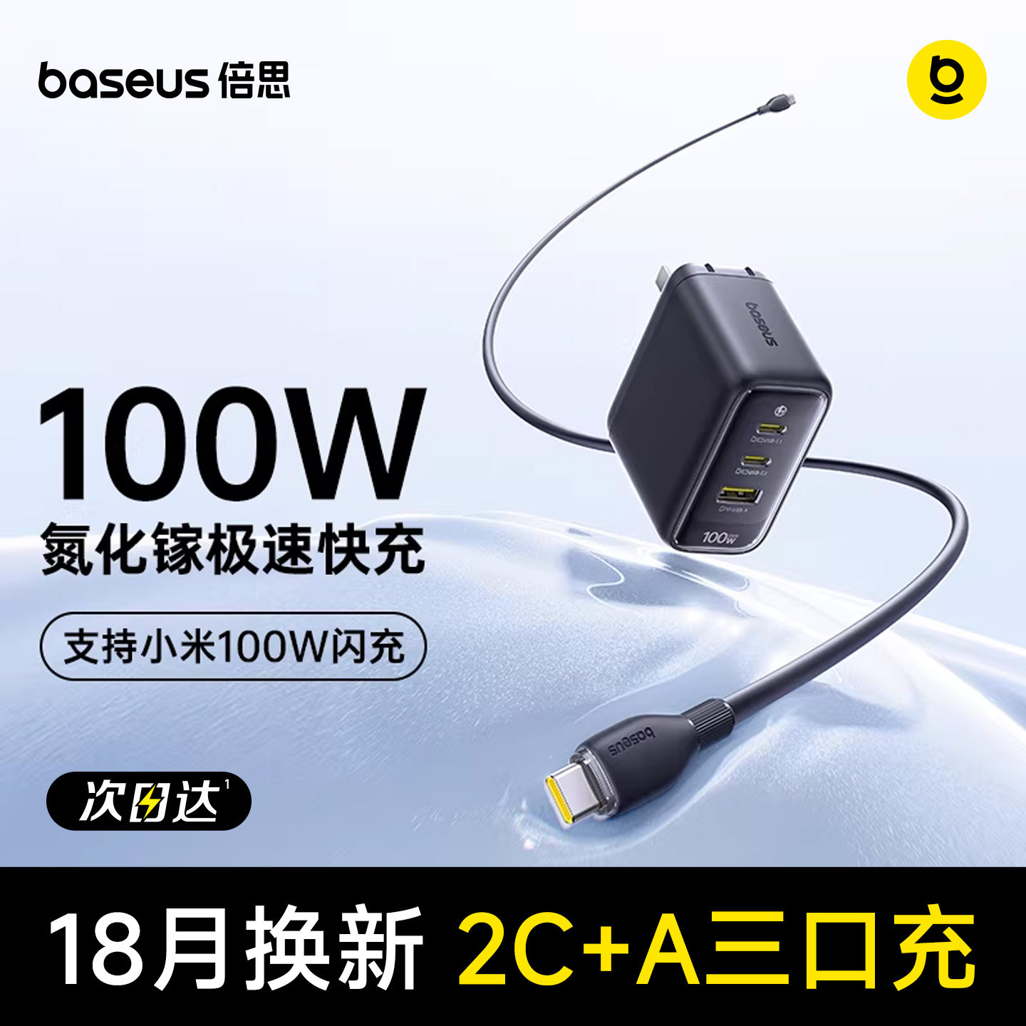 倍思100W氮化镓充电器多口充电头插头Type-C快充无人机笔记本电脑USB适用苹果17promax手机安卓