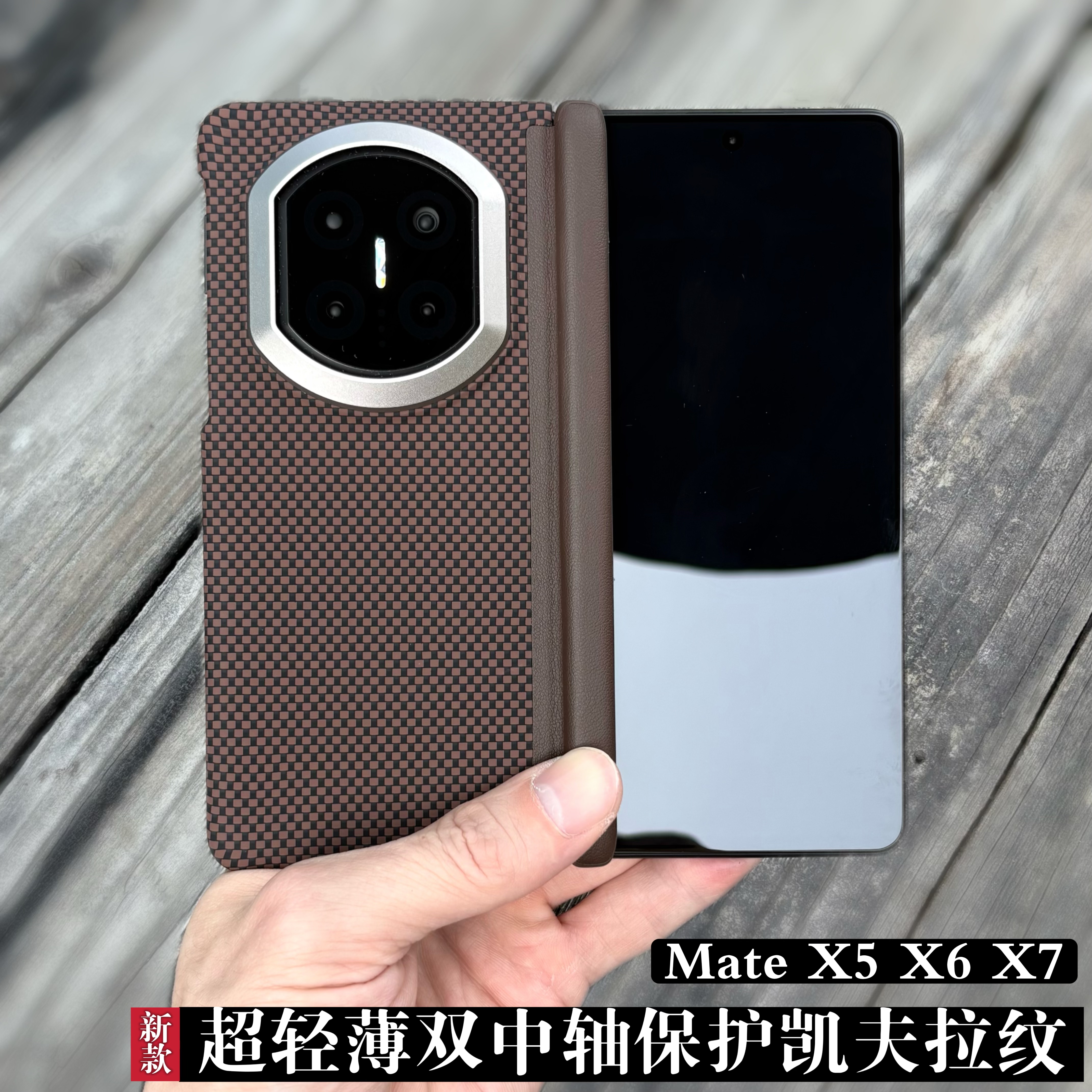 超轻薄双中轴铰链全包凯夫拉碳纤纹理适用华为matex6手机壳新款matex5典藏版防摔手机套matex7商务高级保护壳