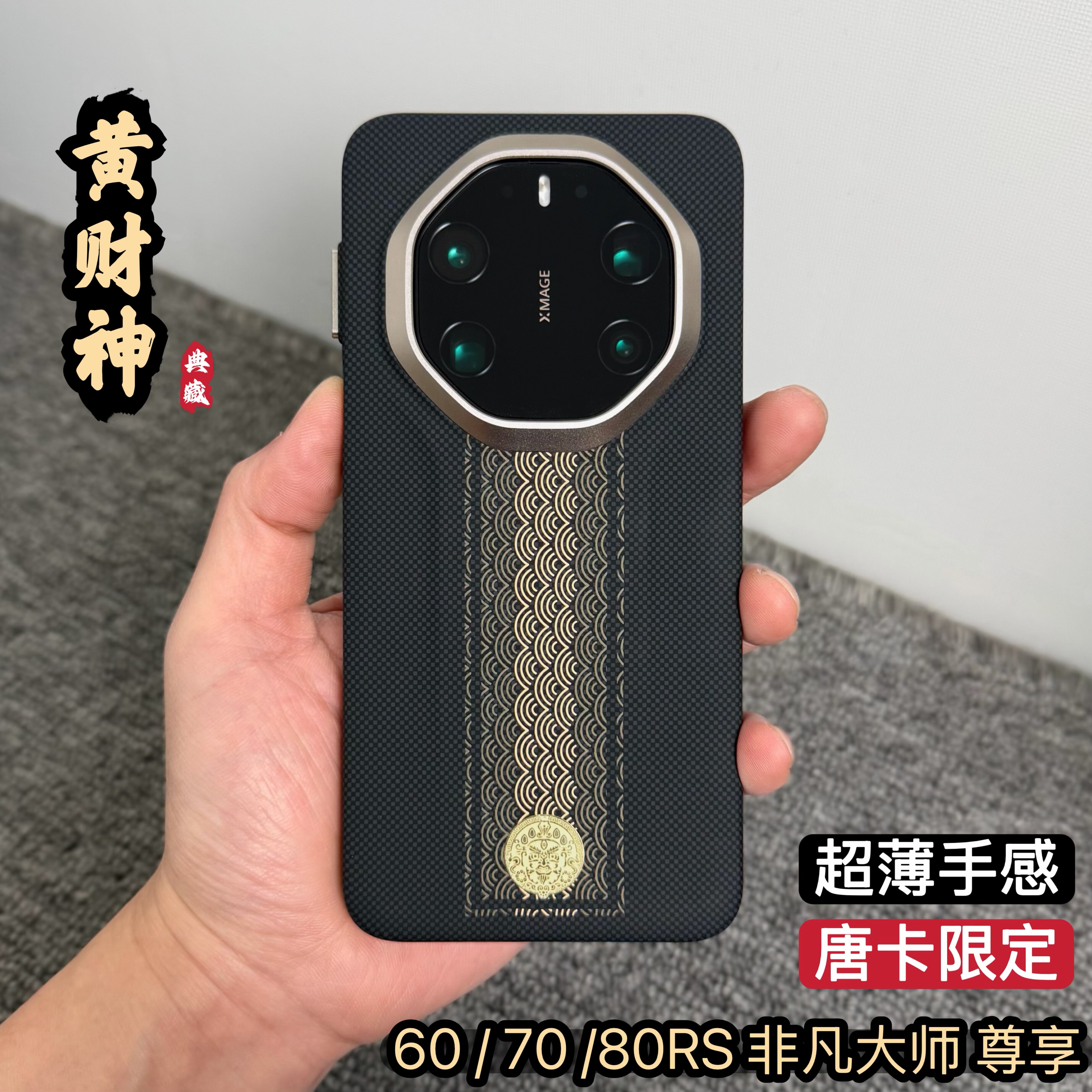 顺财运黄财神」适用华为mate80rs非凡大师手机壳新款纤维凯夫拉纹理Mate70RS磁吸保护套超薄全包60rs防摔壳