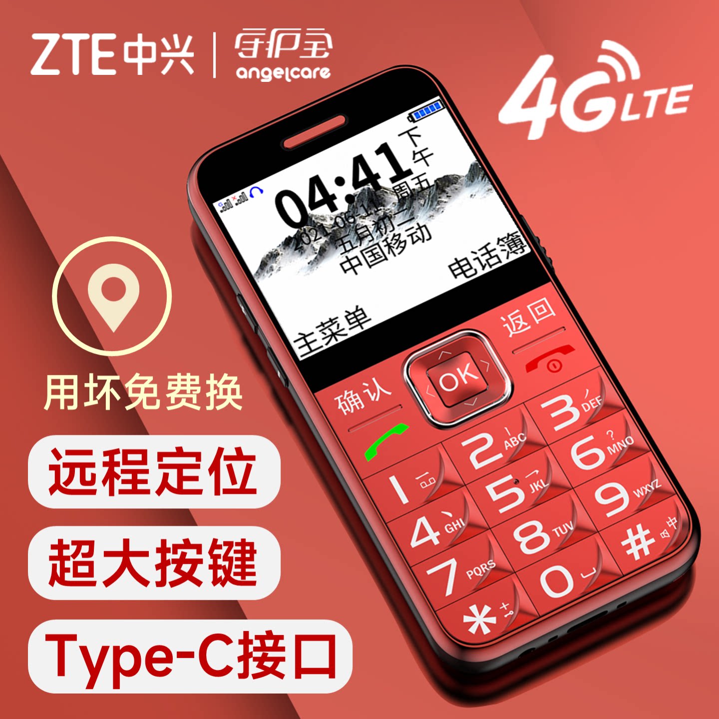 【远程定位】中兴守护宝K580s全网通4G老年机老人机手机带定位GPS防走丢失神器超长待机大按键大字大屏大声