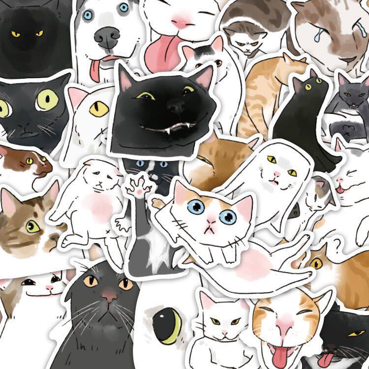 贴纸可爱102张笔记本猫咪手机壳丑萌狗狗电脑卡通手账装饰DIY防水