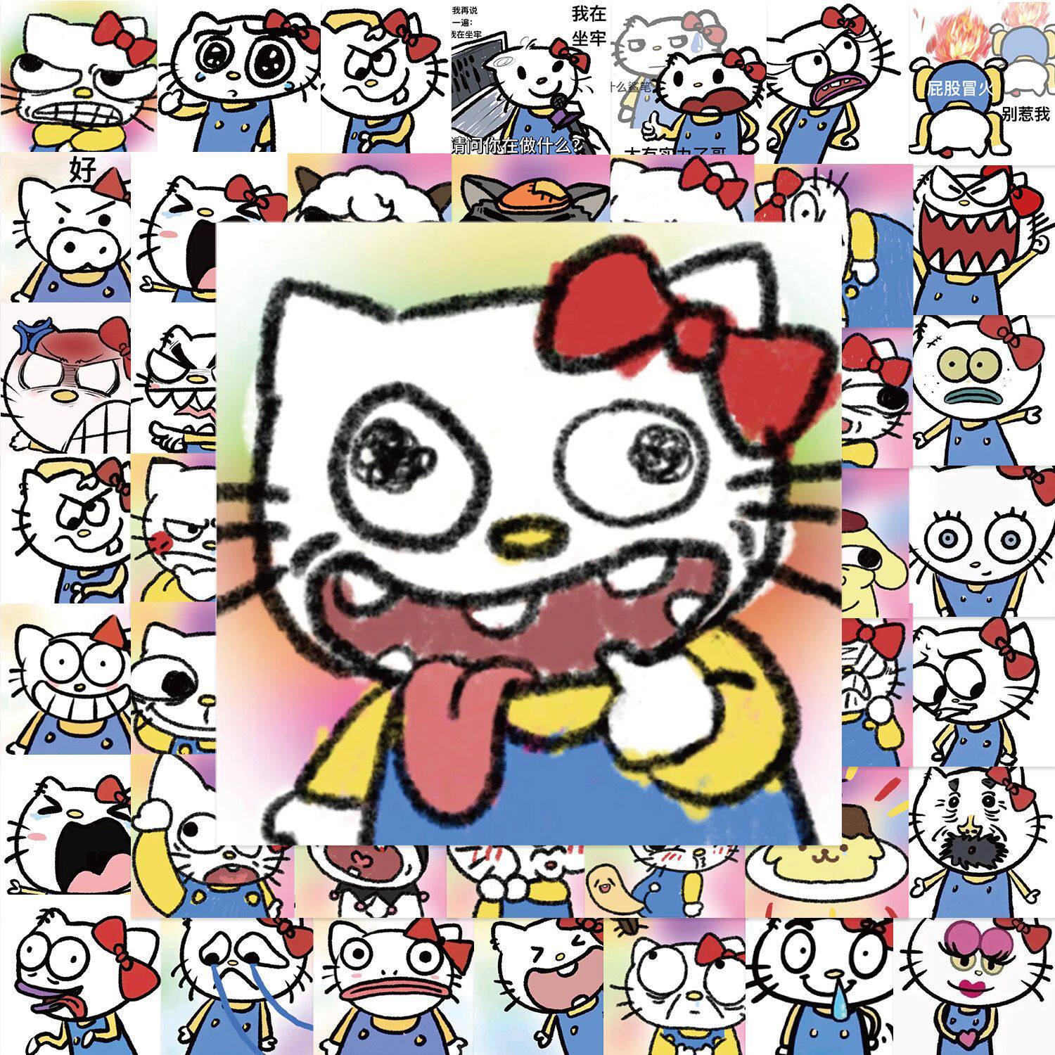 63张爆改凯蒂猫表情包贴纸搞笑创意手账手机装饰贴画抽象Kitty