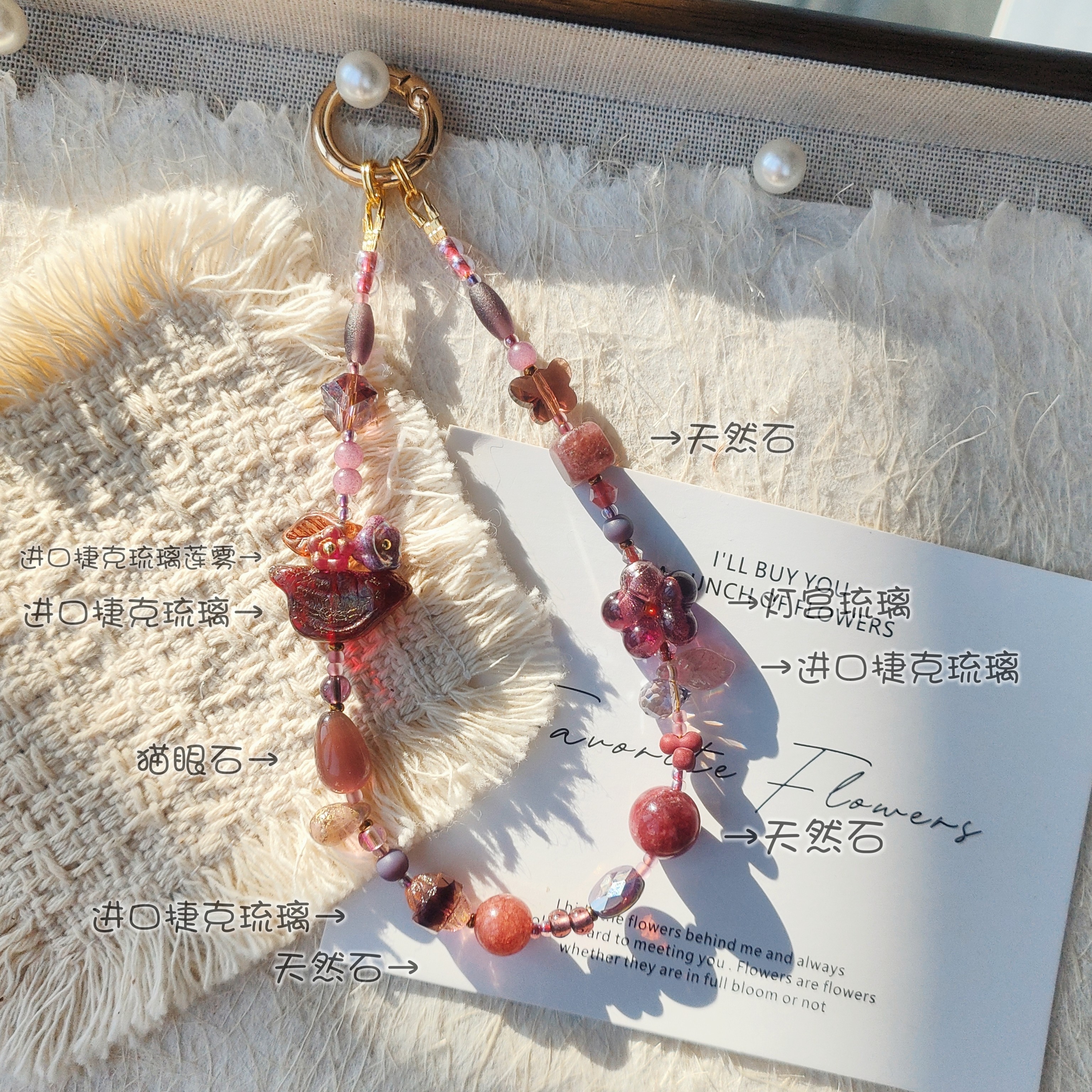 深彩系列 | 原创精致水晶天然石串珠超细米珠手机链钥匙扣链包挂