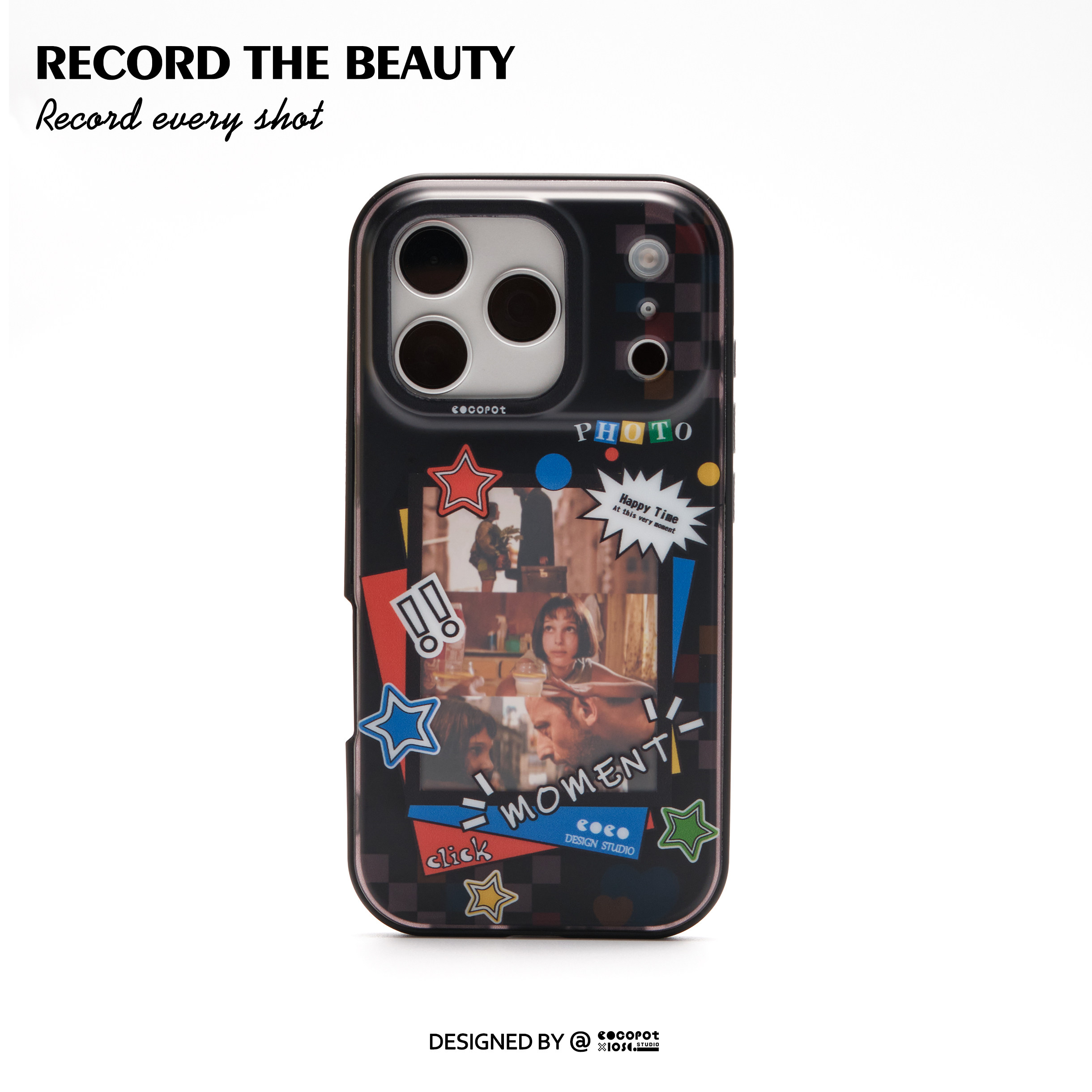 iosco 原创「韩系拍立得」涂鸦元素可放照片 适用于苹果 17 16 15 pro max 手机壳 磨砂质感 情侣款 黑白色