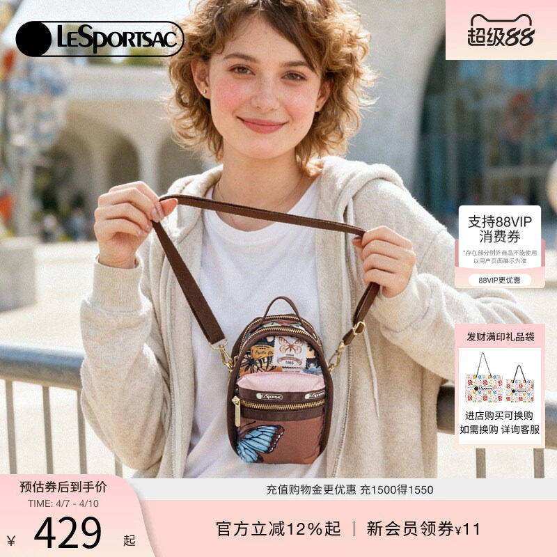 LeSportsac乐播诗新款蝴蝶邮票系列温柔复古风休闲手机包女斜挎包