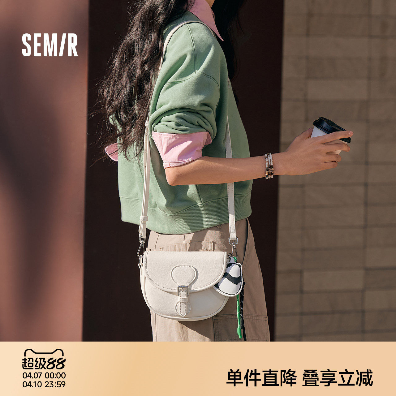 森马包包女翻盖马鞍包复古工装斜挎包2025新款单肩包熊猫手机包潮