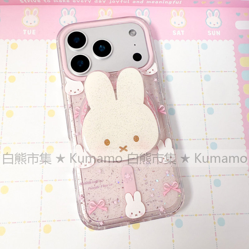 适用iphone17promax苹果17手机壳MagSafe磁吸15支架14米菲兔16小兔子卡通少女ins风闪粉无线充电保护套17pro