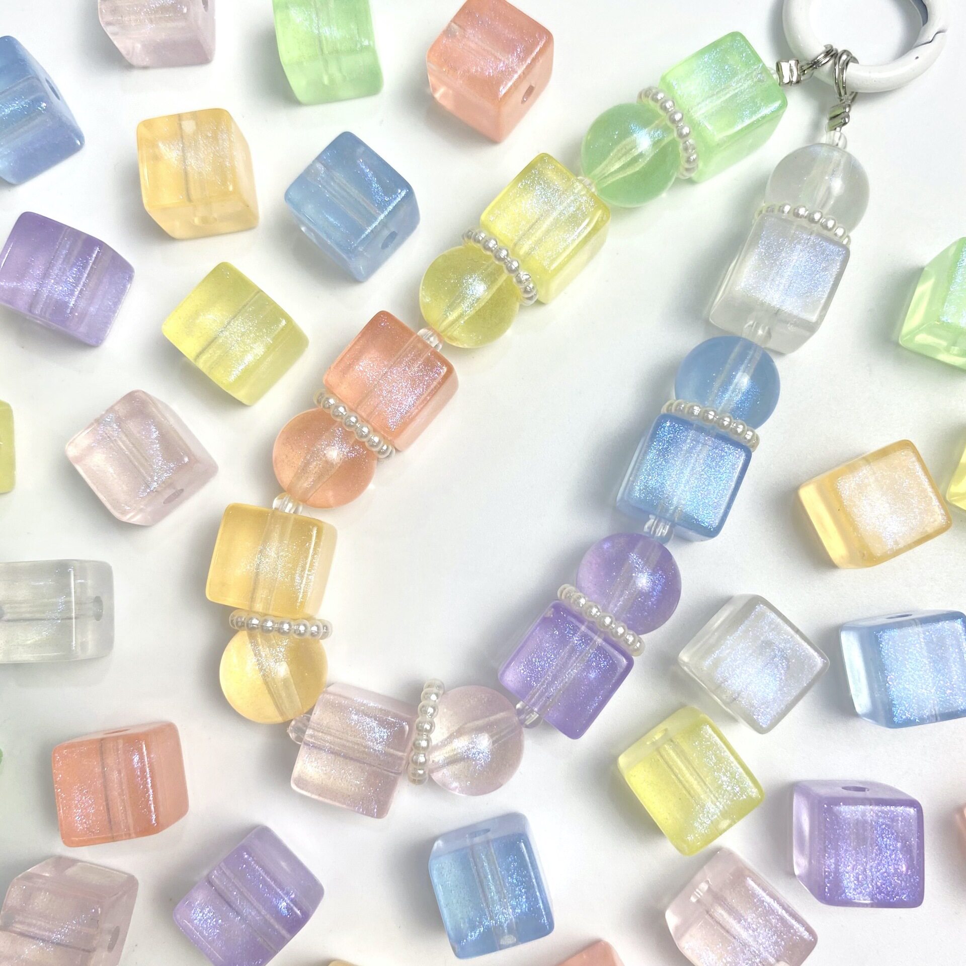 七彩细闪葱粉正方形方块珠 高级DIY自制皮筋串珠手机链条挂坠材料
