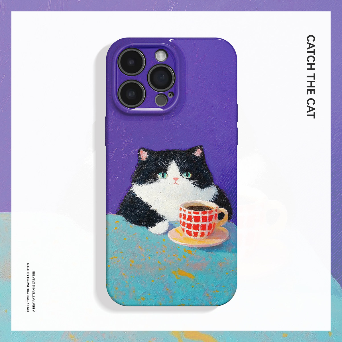 紫色小猫~简约油画全包适用iPhone15/16promax手机壳新华为pura70小米14菲林13软12可爱11OPPOreno9/vivos19