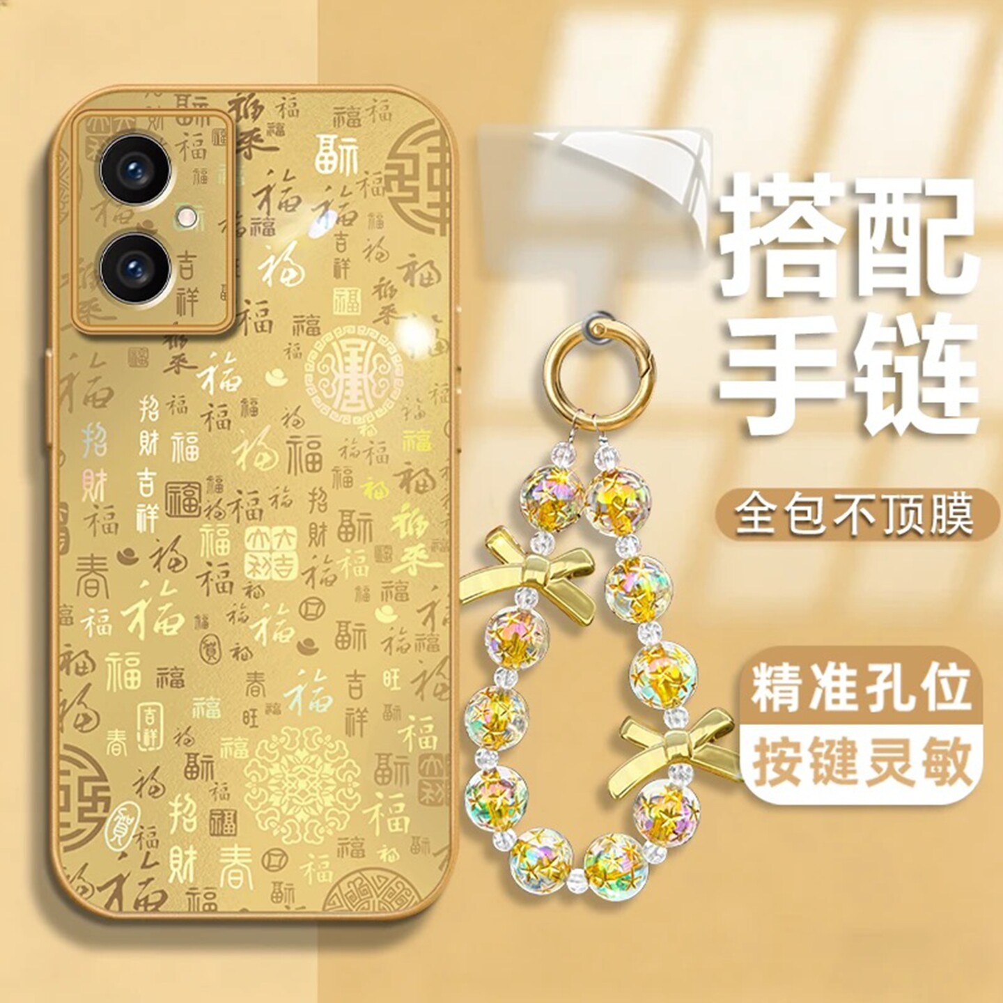 新年金属漆百福壳适用荣耀100手机壳新款简约荣耀500外壳挂绳硅胶荣耀400防摔带手链鎏金荣耀300手机套女款