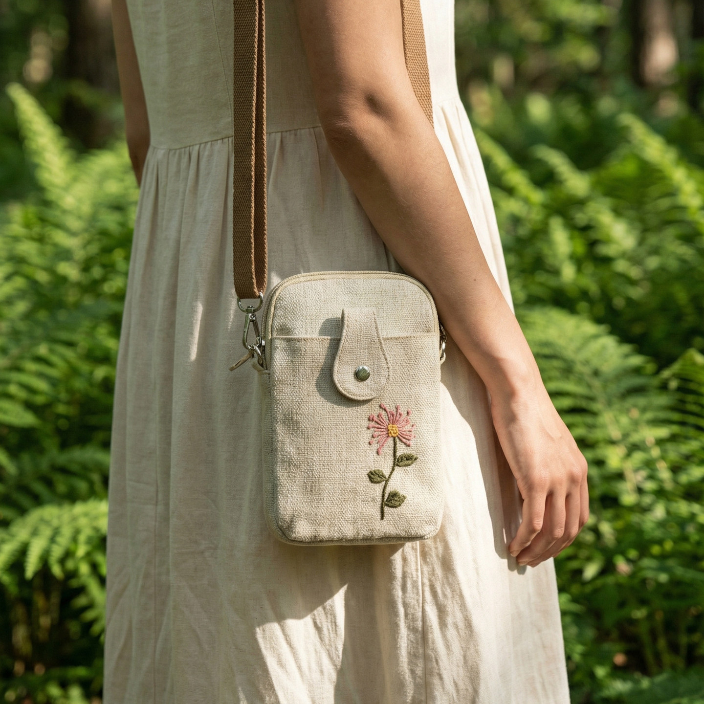 布也民族风手工缝花朵小方包女斜挎包轻便田园风多隔层手机包