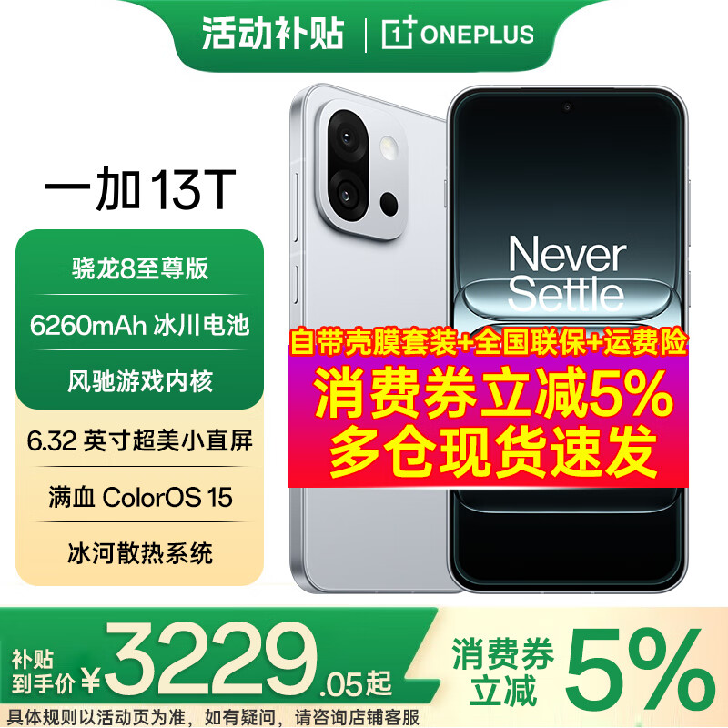 OPPO一加 13T 新款智能手机 小屏大魔王 骁龙8至尊版 拍照游戏5G手机 晨雾灰 12GB+256GB 官方标配【全国联保】