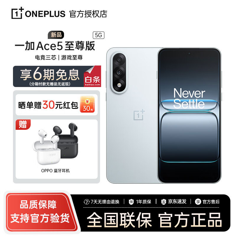 一加ace5至尊版手机新品游戏性能手机好用不贵 清风蓝 12GB+256GB 国补活动专享【无礼赠无晒单】