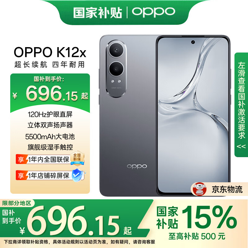 OPPO K12x 【国家补贴】5G OLED 直屏 80W超级闪充 5500mAh超大电池 四年久用流畅 直屏智能手机 钛空灰 8+256GB 官方标配