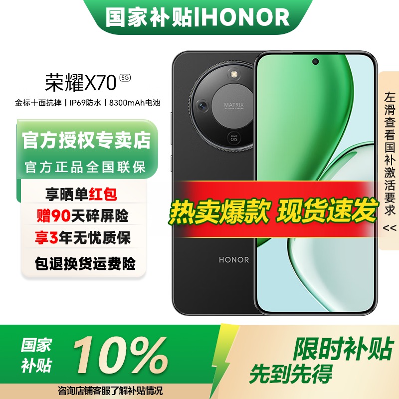 荣耀x70 新品上市 5G AI智能手机 金标十面抗摔防水 手机荣耀 幻夜黑 12GB+512GB 官方标配