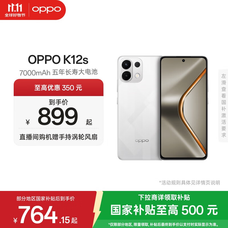 OPPO K12s 5G手机 7000mAh五年长寿大电池 80W超级闪充 全新骁龙6芯片 NFC 红外遥控 AI手机 星芒白 8GB+128GB