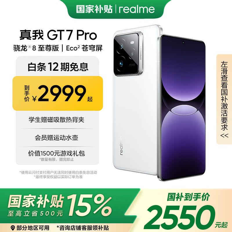 真我(realme)GT7 Pro 骁龙8至尊版 水陆两栖超光影潜望 6500mAh泰坦电池 太空探索设计 智能AI拍照电竞游戏手机 光域白 12GB+256GB