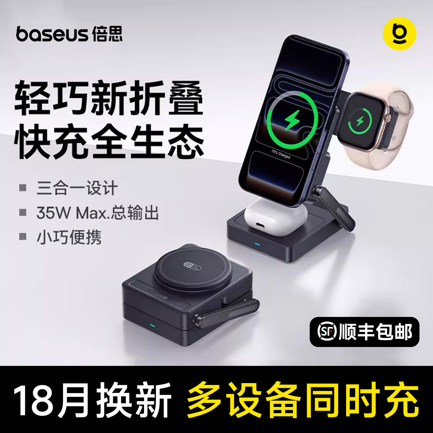 【顺丰包邮】倍思35W三合一磁吸无线充电器支架适用iPhone17苹果手机iWatch手表耳机magsafe底座AirPods立式