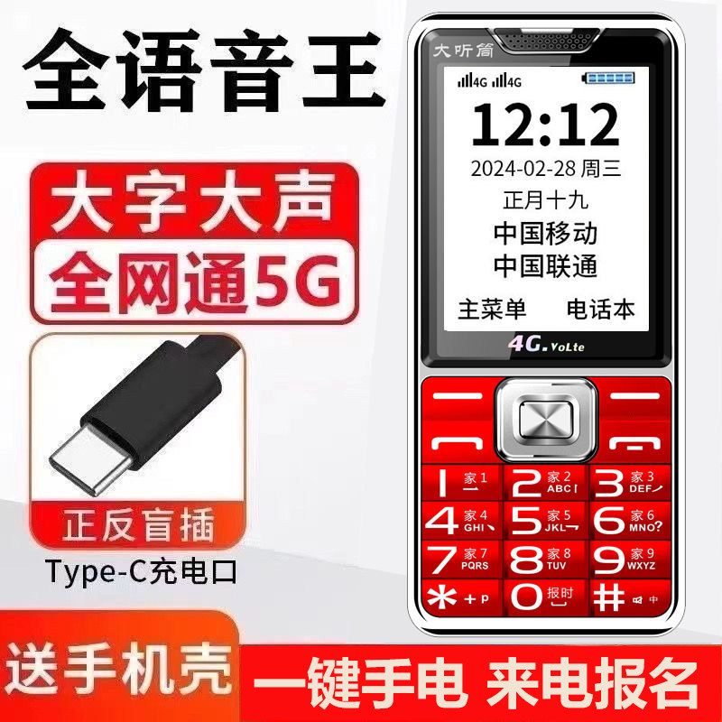 【大声大字】新款直板超长待机老人手机大字大屏4G5G全网通老年机