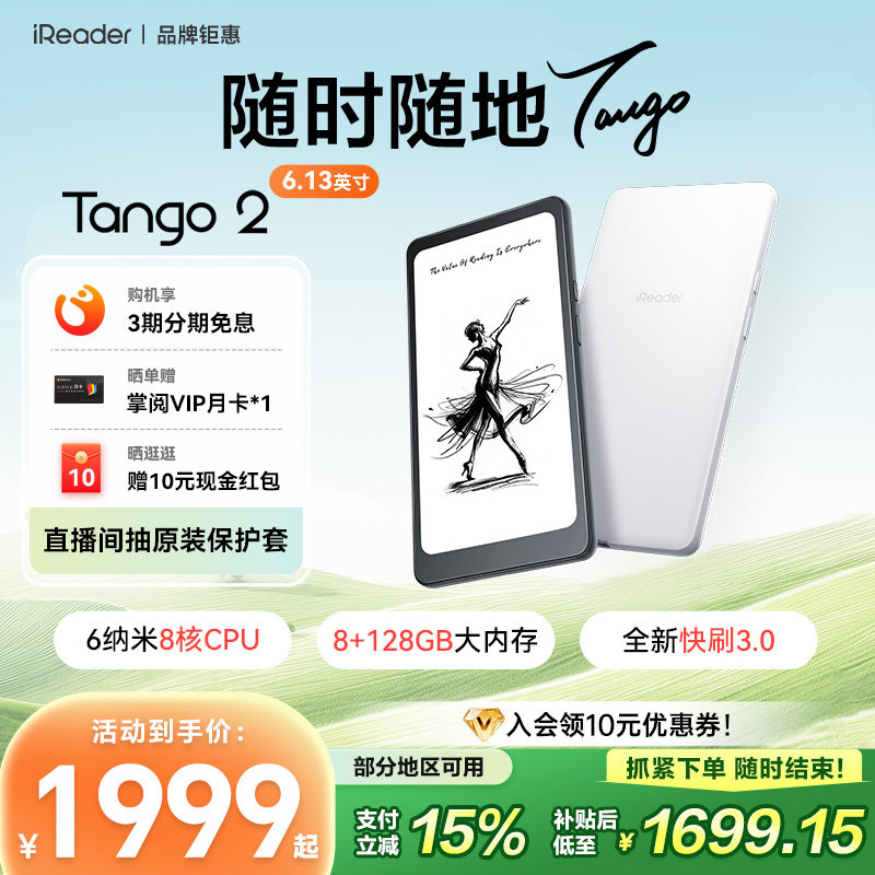 【入会立减】掌阅iReader Tango 2 电子书阅读器6.13英寸墨水屏手机电子纸护眼阅览器电纸书水墨屏书小说漫画