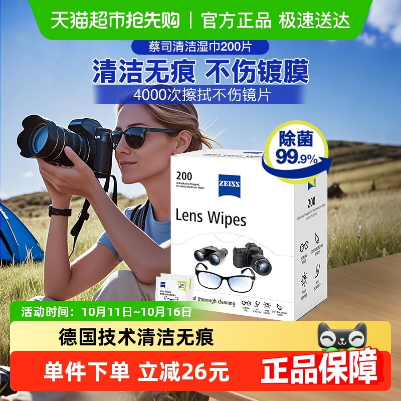 德国蔡司擦镜纸眼镜镜头手机电脑屏幕清洁湿纸巾200片×1盒除菌