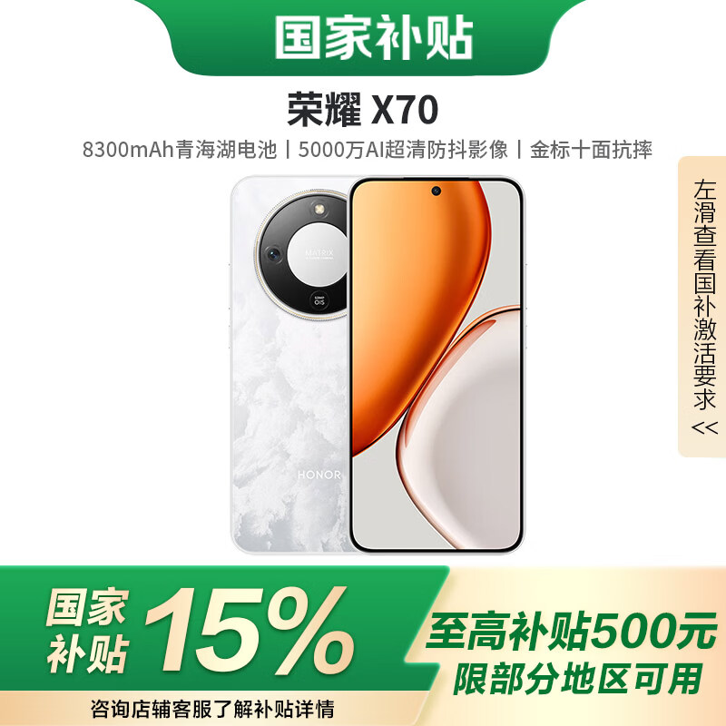 荣耀X70焕新版 新品手机2025上市 国家补贴 硬核之王巅峰续航 5G手机 月影白 8GB+128GB 官方标配
