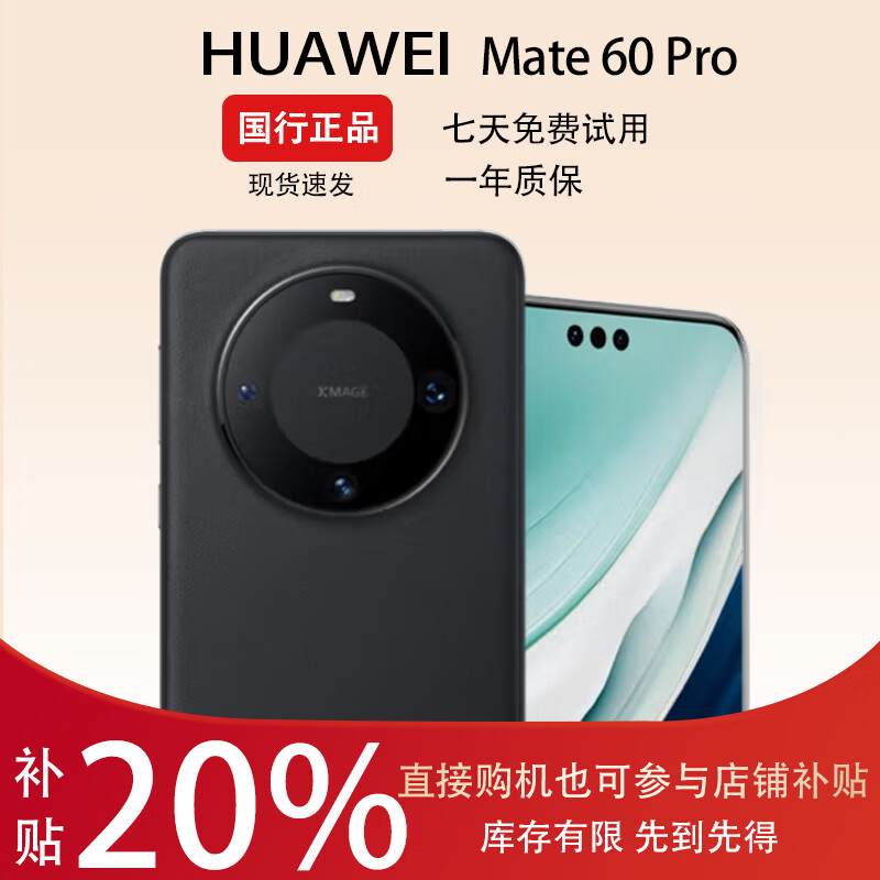华为Mate60 手机 mate60pro国行手机旗舰鸿蒙智能AI手机麒麟芯片正品国行pro补贴智能 mate60Pro【雅丹黑】 12G+512G 支持7天试用赠送适配充电器