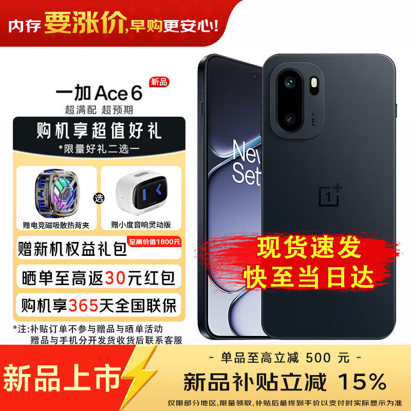 一加【国家补贴减15%】一加 Ace 6超满配 超预期 165hz高刷 新品游戏电竞手机 骁龙8至尊版 一加ace6 竞黑 12GB+256GB