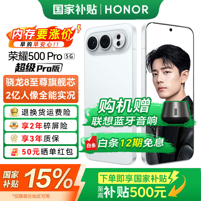 荣耀500 Pro 【肖战同款】5G手机 超级Pro版 骁龙8至尊旗舰芯 2亿人像全能实况 手机荣耀 AI手机 月光银 12GB+256GB【2年碎屏险+3年质保】 官方标配