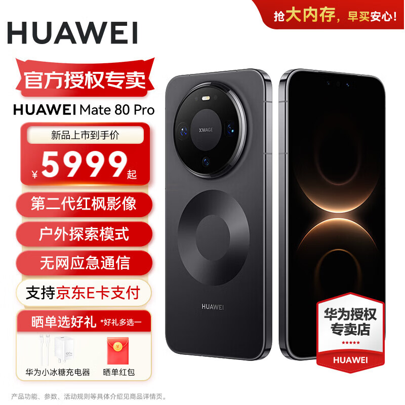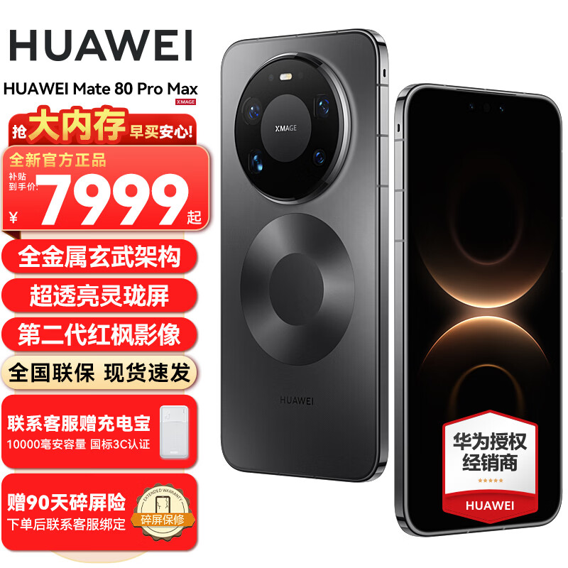 HUAWEI Mate 80 Pro Max 旗舰手机Ai 华为mate80promax手机 鸿蒙6.0 红枫原色影像 旗舰产品 官方正品 极夜黑 16GB+512GB 赠碎屏险 全国联保