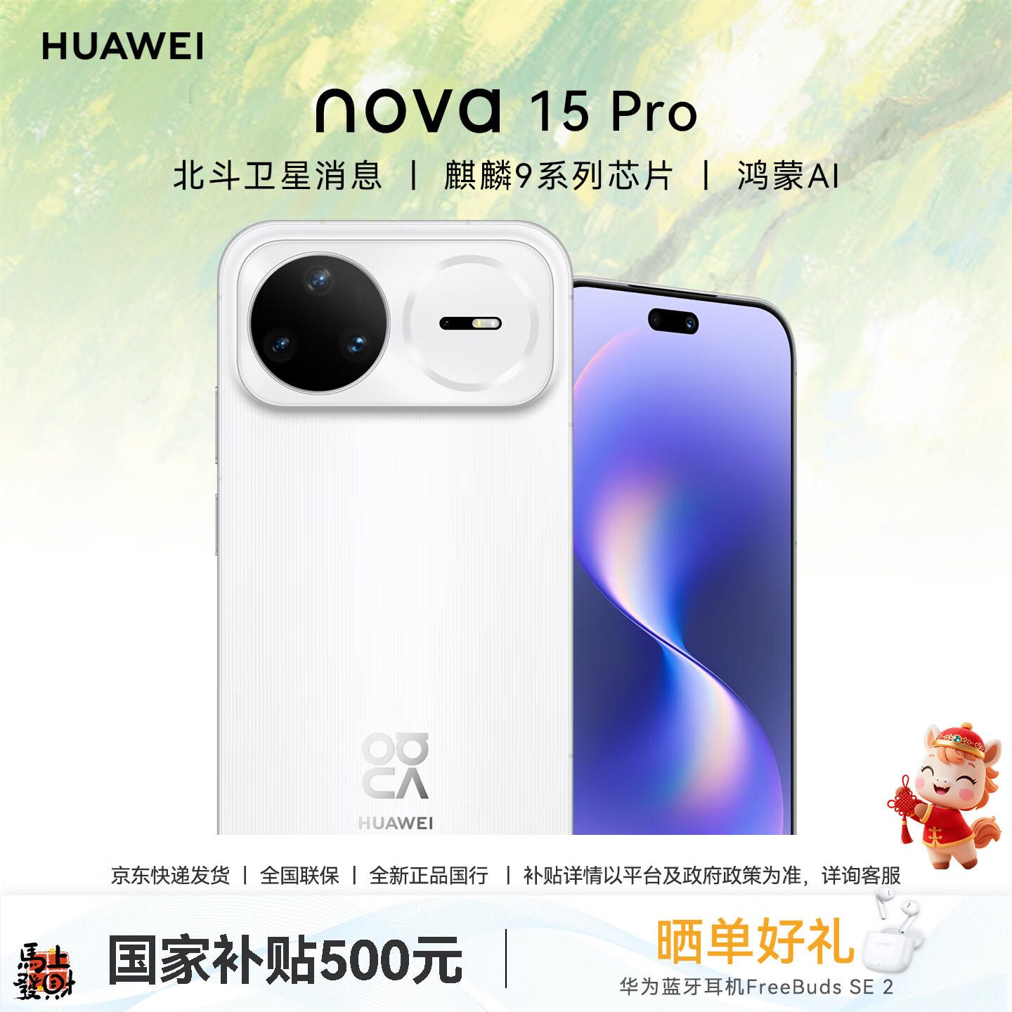 华为(HUAWEI)nova 15 Pro 手机【国家补贴500元+晒单送华为无线耳机】 零度白 512GB 昆仑玻璃