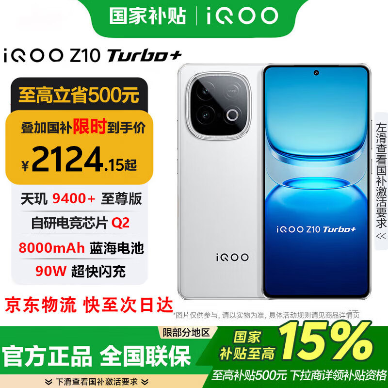 vivo iQOO Z10 Turbo+ 天玑9400+旗舰芯 144Hz光域护眼屏 8000mAh蓝海电池 国家补贴 学生电竞游戏手机 云海白 12+256GB 官方标配