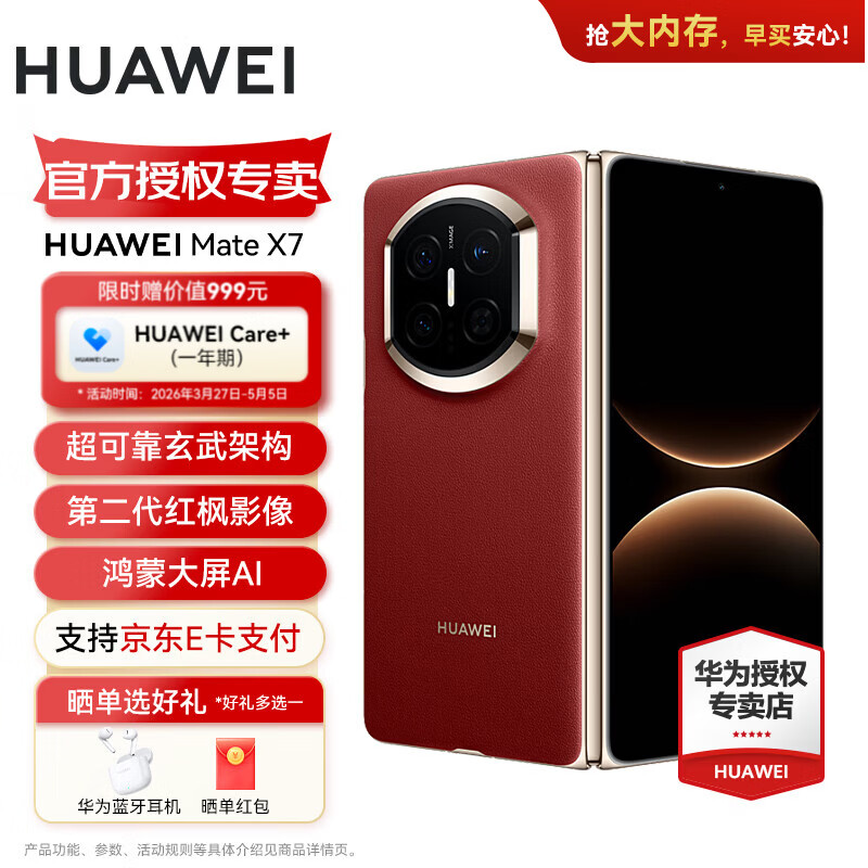 HUAWEI Mate X7 折叠屏手机 超可靠折叠玄武架构 华为折叠屏鸿蒙 华为matex7手机 寰宇红 12GB+512GB