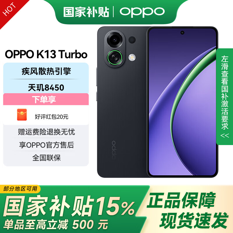 OPPO K13 Turbo 国家补贴 疾风散热引擎 潮汐引擎 天玑8450 5G大容量电池游戏手机 黑武士 12GB+256GB 官方标配