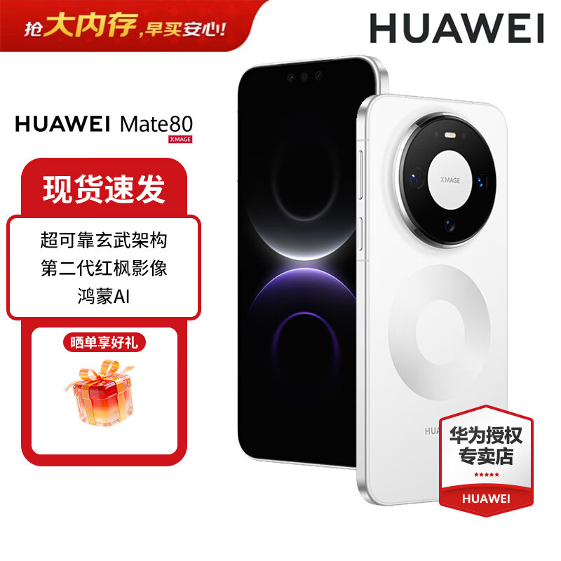 华为(HUAWEI)Mate 80 第二代红枫影像鸿蒙AI 华为直屏鸿蒙手机 雪域白 12GB+256GB 官方标配