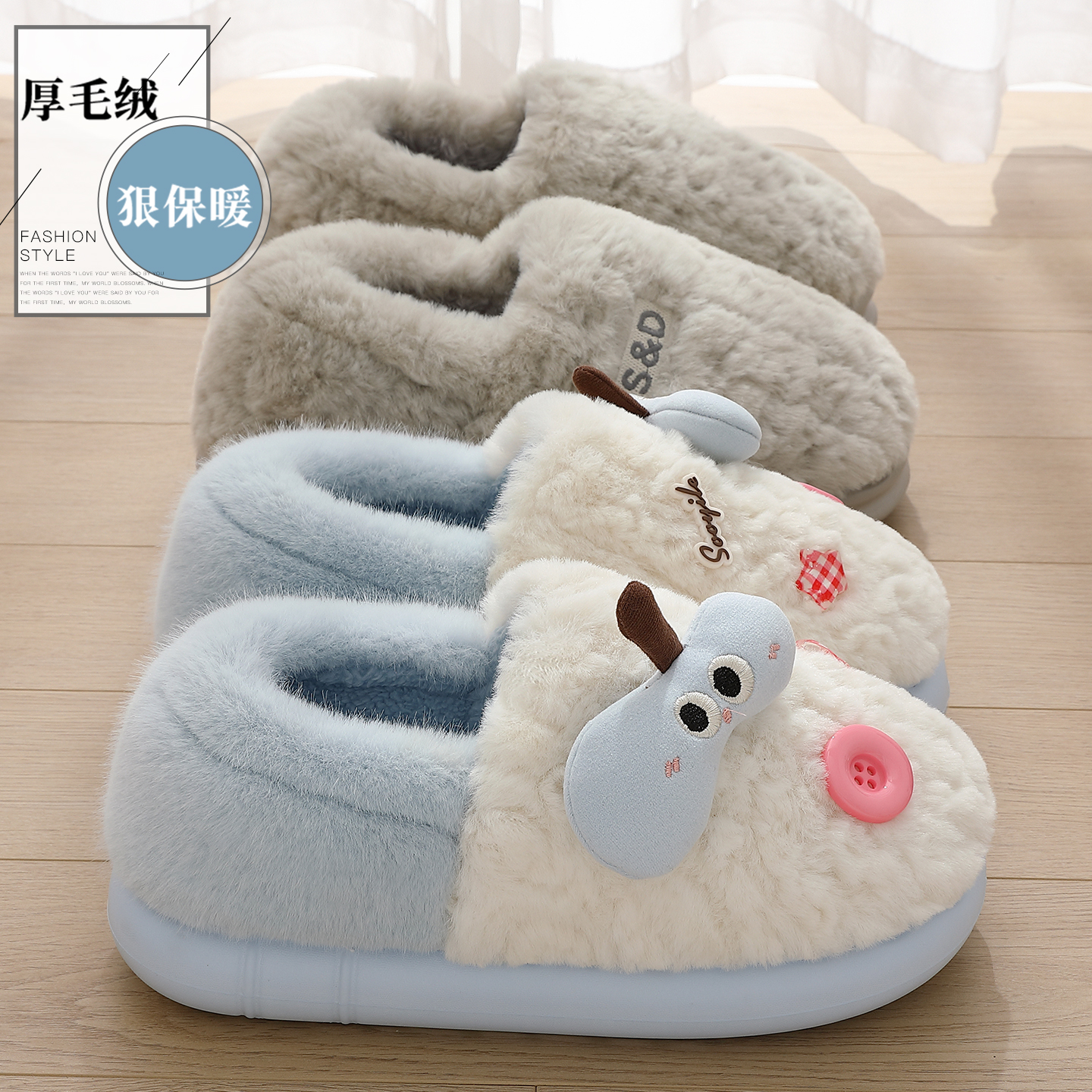 棉拖鞋女冬季包跟加绒加厚底居家用保暖外穿防滑毛绒情侣棉鞋男士