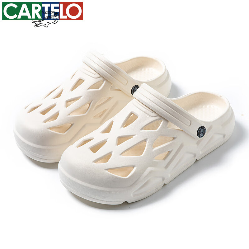 卡帝乐鳄鱼洞洞鞋男踩屎感2024新款防滑厚底防臭沙滩外穿男士运动户外凉拖鞋 白色 XH200 40 -41