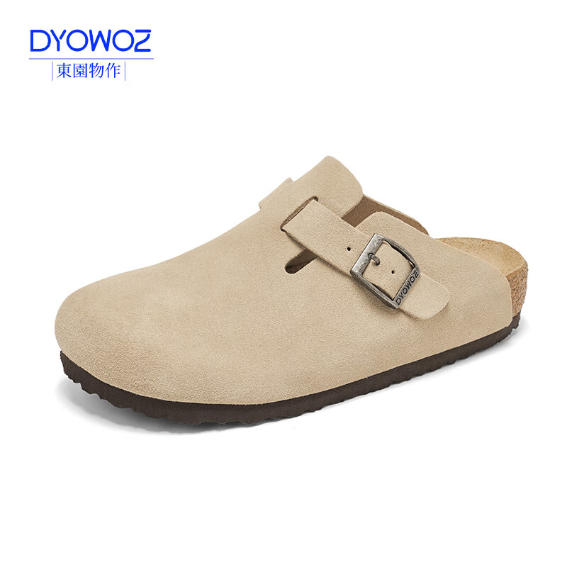 东园物作软木拖鞋真皮休闲日系时尚百搭外穿防滑情侣款Boston半包勃肯鞋 沙色 38 正码