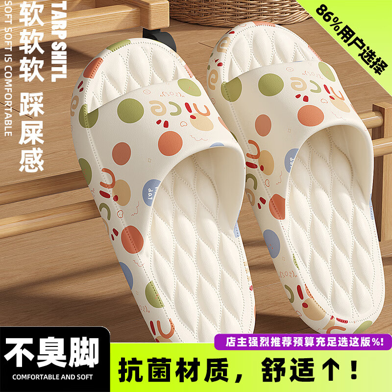 QYCKABY拖鞋女士夏季踩屎感居家室内简约软底轻便浴室外穿情侣防滑凉拖鞋 米白 38-39 适合37-38
