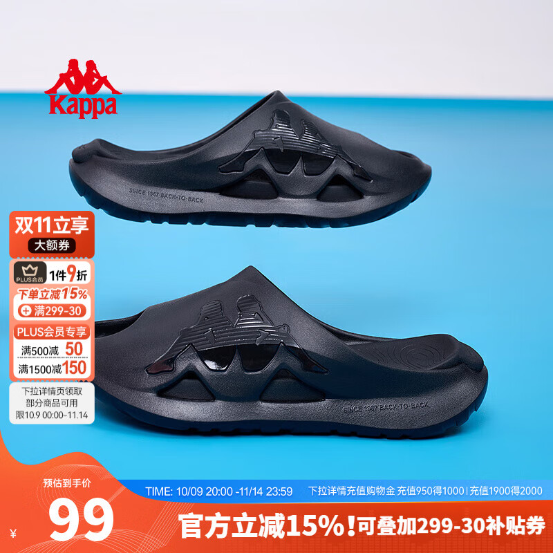 KAPPA卡帕女鞋软底拖鞋子女2025秋季新款户外凉鞋女浴室百搭休闲沙滩鞋 黑色 42