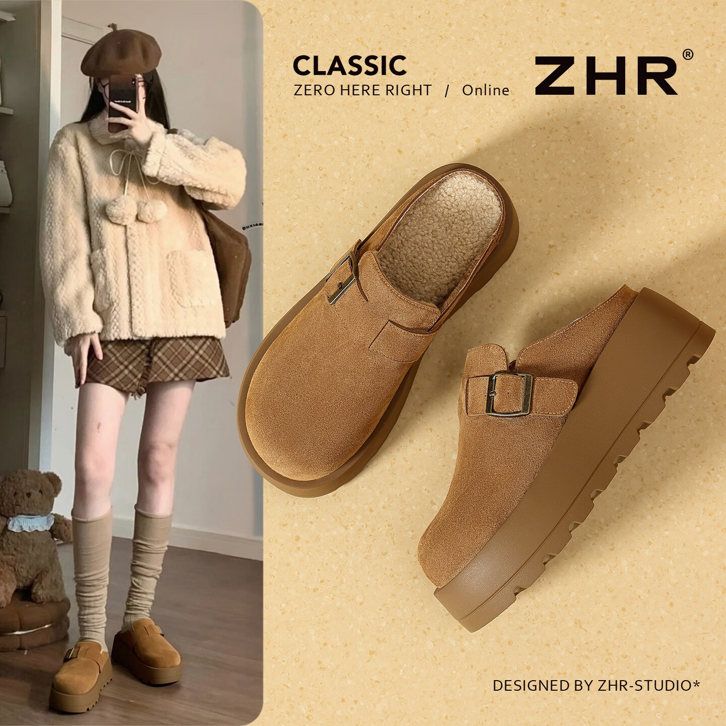 ZHR复古包头半拖鞋厚底增高勃肯鞋女磨砂高级感外穿一脚蹬女鞋懒人鞋 驼色 【增高6厘米】 37