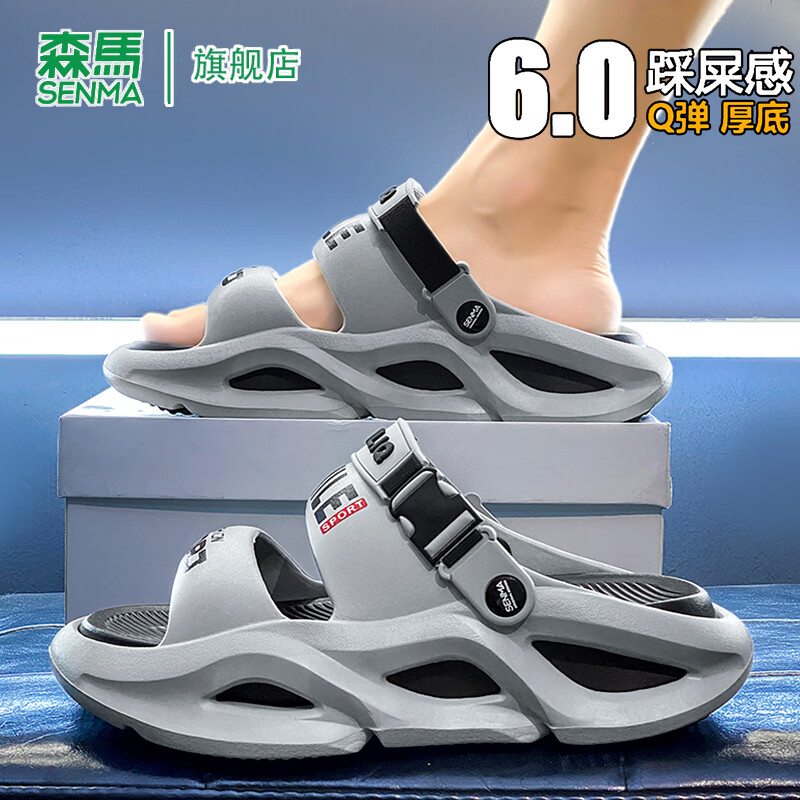 森馬拖鞋男士夏季新款网红爆款情侣居家防滑凉鞋户外可开车运动沙滩鞋 火山灰 42-43