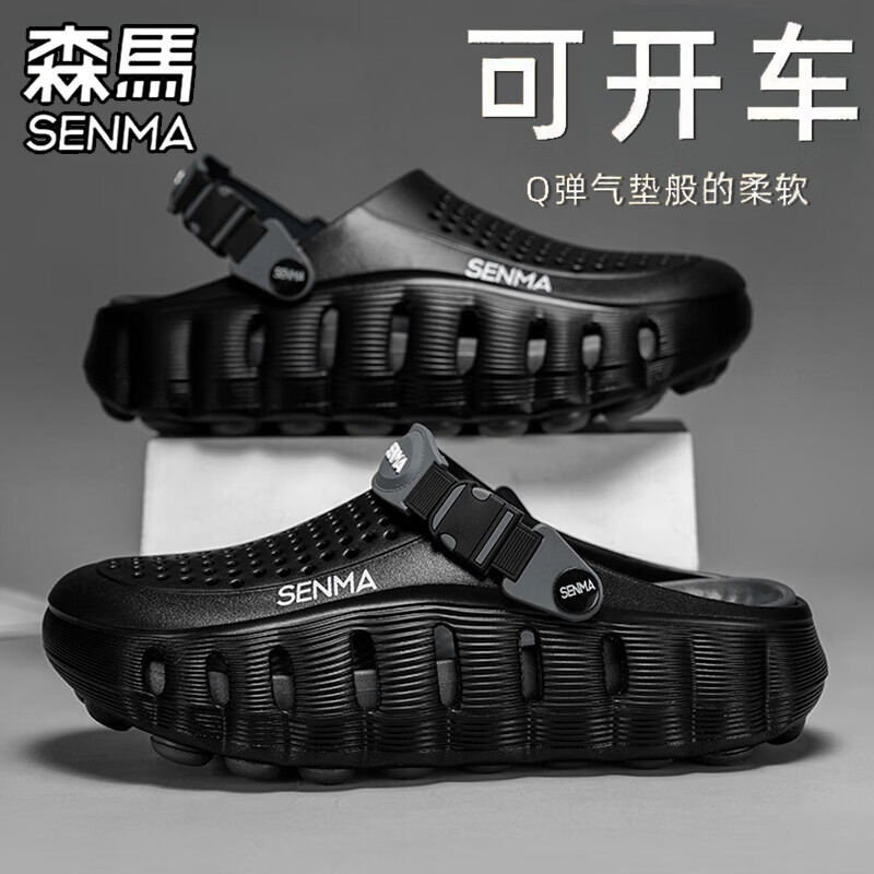 森馬拖鞋男款夏季2026新款外穿厚底踩屎感洞洞鞋男士开车运动沙滩凉鞋 黑色 42-43