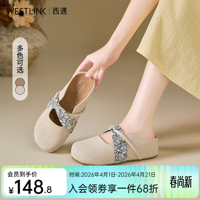 西遇厚底勃肯鞋女秋季2026新款法式仙女风外穿拖鞋内增高包头半拖 米色 37