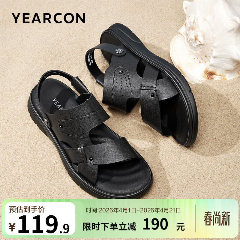 意尔康男鞋 凉鞋男夏季运动休闲户外沙滩鞋轻便透气两穿凉拖鞋男 黑色 42