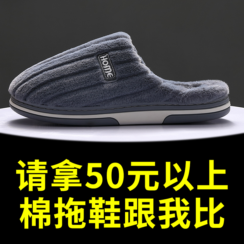 秋冬季棉拖鞋男家用家居室内厚底踩屎感保暖防滑毛绒拖鞋男士冬天