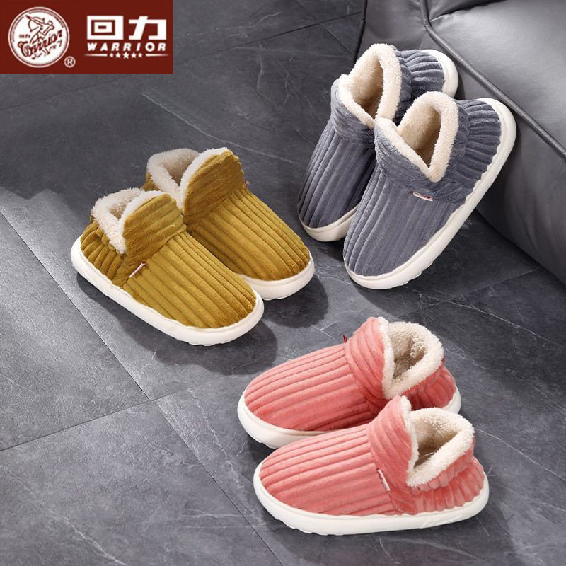 回力棉拖鞋休闲厚底防滑侣款毛绒居家保暖秋冬季防寒男女包跟棉鞋